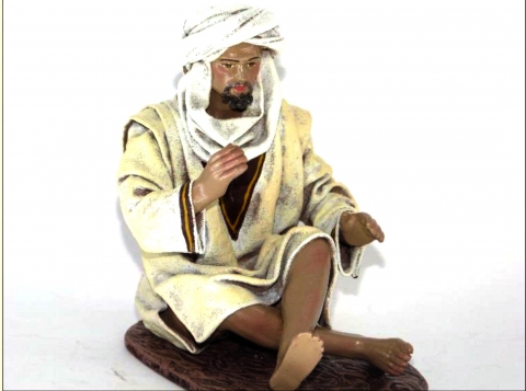 Bedouin seated in polychrome clay and canvas from Nativity Scenes Galán. Available in various sizes. NUM 5