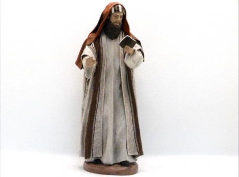 Sacerdote leyendo en pie en barro policromado y lienzado de Belenes Galán. Disponible en varios tamaños.