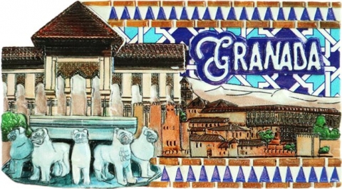 Alhambra magnet made of polychrome resin. 7 x 6 cm.