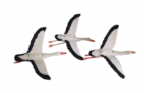 Cigueña volando en barro. Disponible en varios tamaños. Foto orientativa debido al carácter artesanal de la pieza.