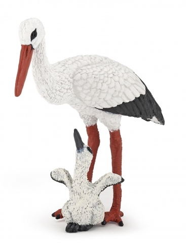 Stork and baby stork. Design Papo. Dimensions (LxWxH): approx. 7.5x3.8x7.3 cm Weight approx. 25g General manufacturer´s recommendation: 3 years and older