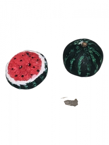 Sandia de modelina. Sandia , precio unidad. Medida 16x22 mm. Para figuras 8-14 cm. Realizado por Lola.