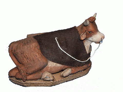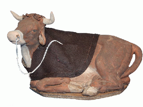 Ox in terracotta and cloth with movement. 24 cms.