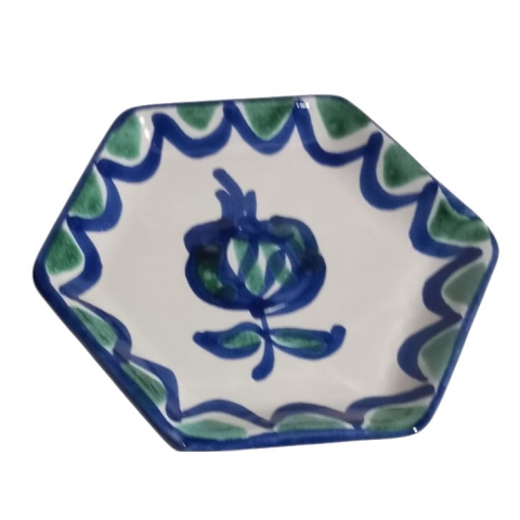 Hexagonal plate in Granada ceramic. 10 cm in size.
