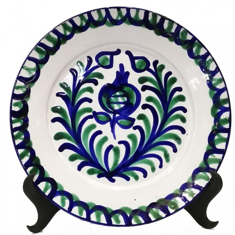 Flat Granada ceramic dish or platter. Decoration in popular style. Available in various sizes. Orientative photo due to the artisanal nature of the piece.