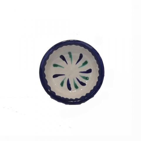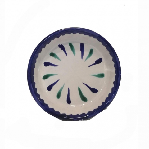 Plato para Maceta popular (Cerámica granadina.) Decoración tradicional con esmalte azul y verde con fondo blanco. Disponible en varios tamaños.