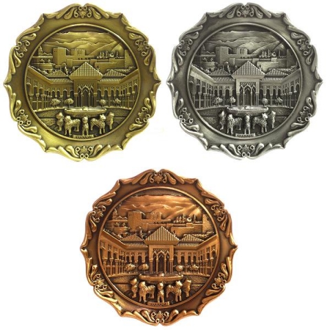 Plato de metal con soporte,acabado en plateado,dorado o cobre 11cm.