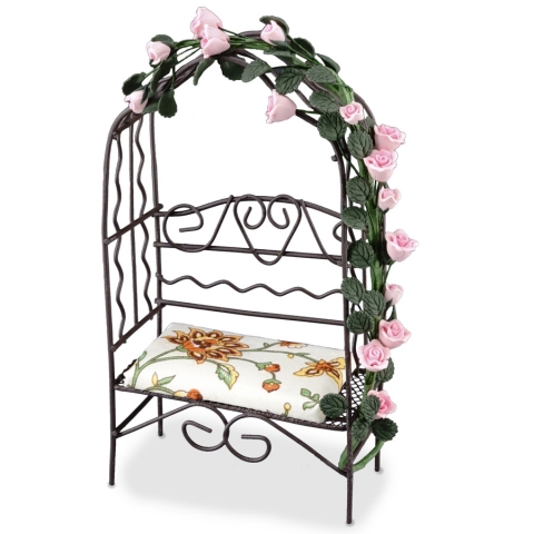 Garden bench. 1:12 scale. Measure: Weight: 53 g Width: 9.4 cm Length: 4.9 cm Height: 16.3 cm