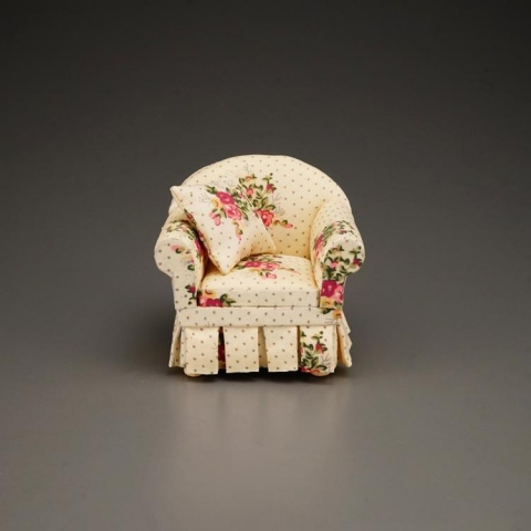 Sillón decorado con topos y flores. Escala 1:12.