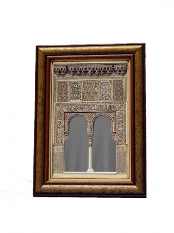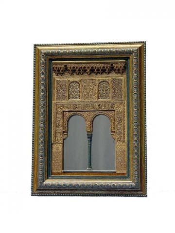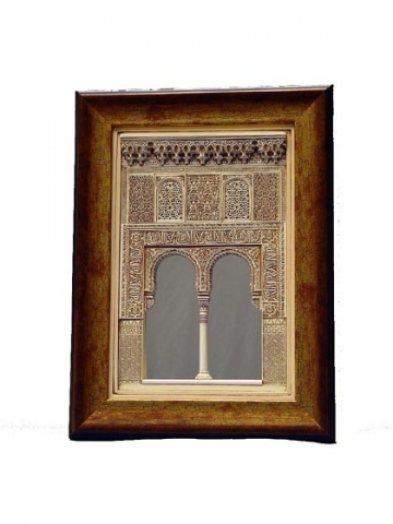Cuadro "Mocárabe " con fondo de espejo y moldura nogal con dorado 35*46 cm.