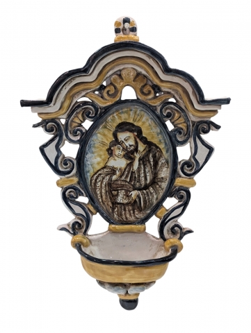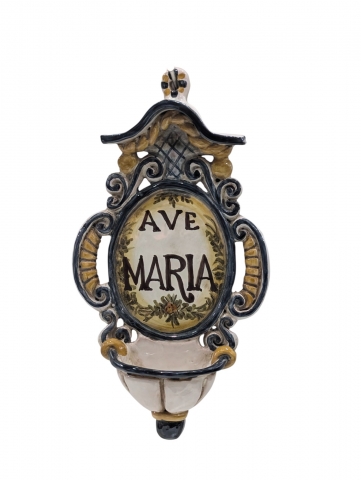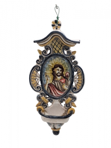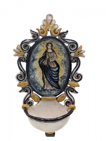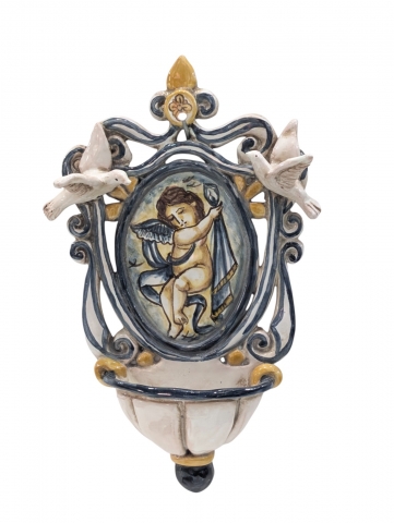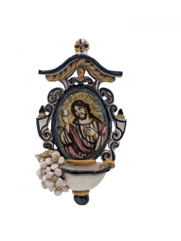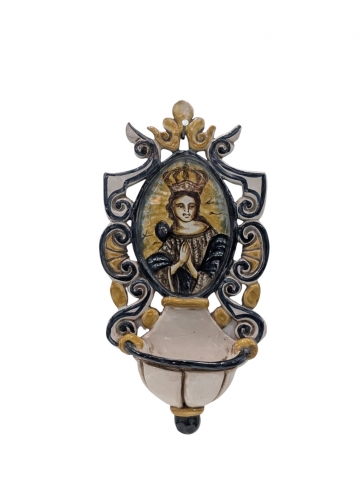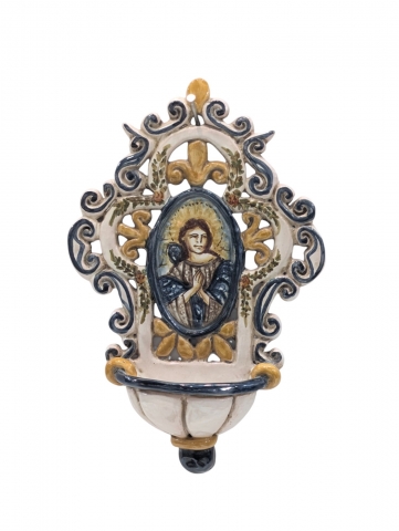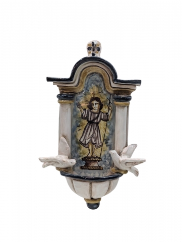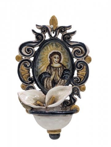 Rey Artistic Ceramic Holy Water Font. Approximate Measurements:26X14cm All fonts are original and unique pieces.