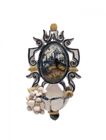 Holy water font made of Granada ceramic. Approximate measurements: 15x 9cm.