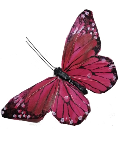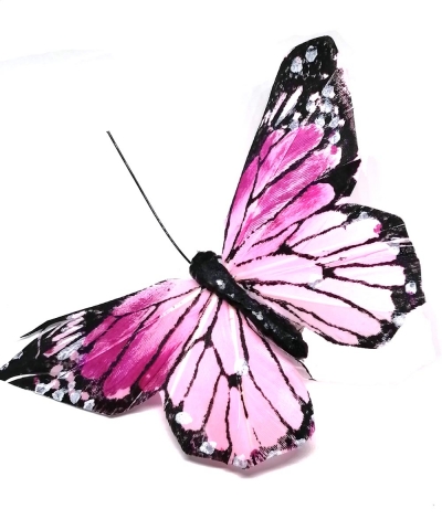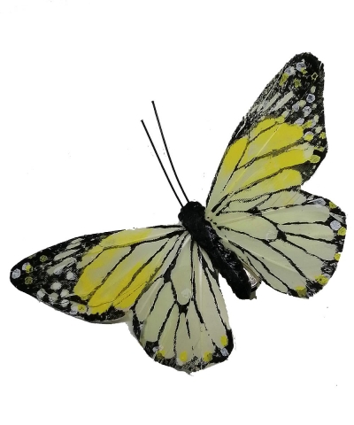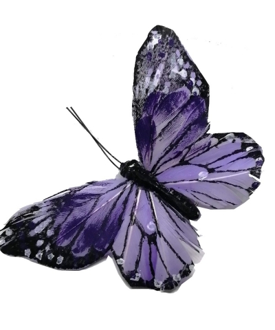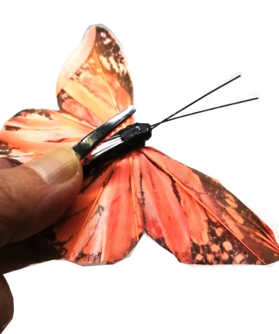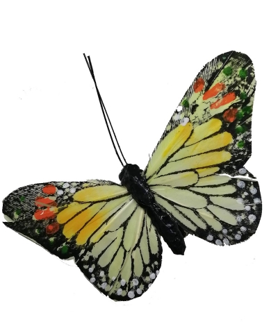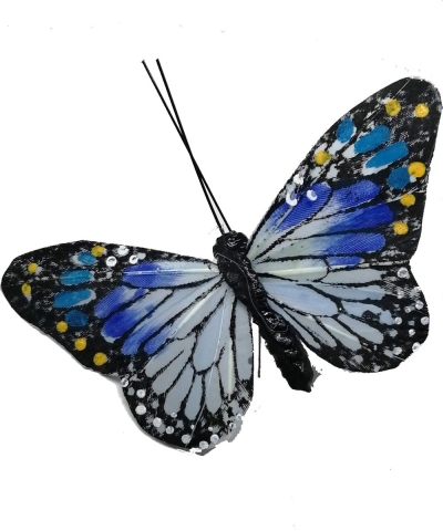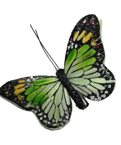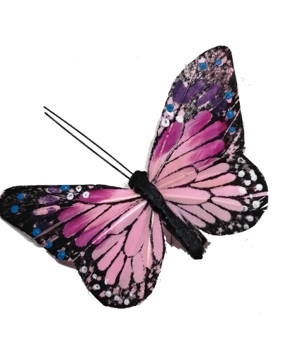 Butterfly with 11cm clip made on feathers, painted by hand. Set of 6 models.