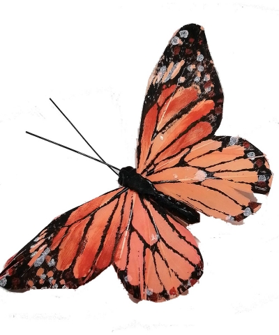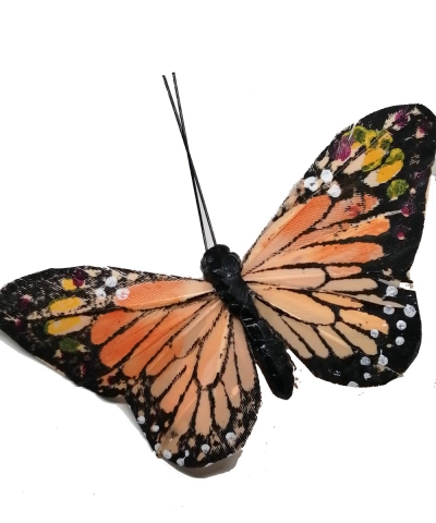 Butterfly with 11cm clip made on feathers, painted by hand. Model 3.
