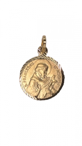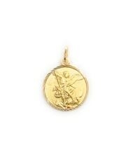 Medalla colgante de San Miguel Arcángel en plata de ley 925 milésimas cubierta de oro de 18kt . San Miguel Arcángel, defiéndenos en la lucha. Sé nuestro amparo contra la perversidad y asechanzas del demonio.Medida: 10mm.