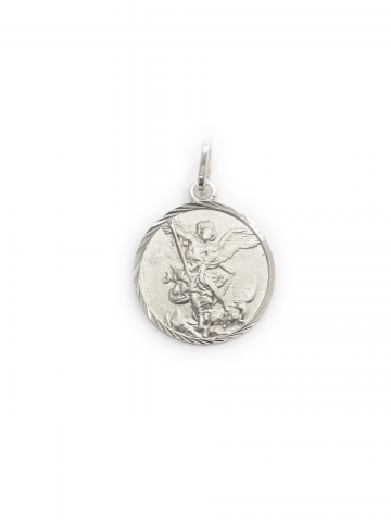 San Miguel Arcángel pendant medal in 925 thousandth of 18kt gold cover. San Miguel Arcángel, defend us in the fight. Be our amparo against the perversity and rod of the devil. Media: 10mm.