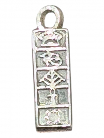Sterling silver ash holder pendant. The pendant clasp is screw-on. Egyptian model with hieroglyphics.