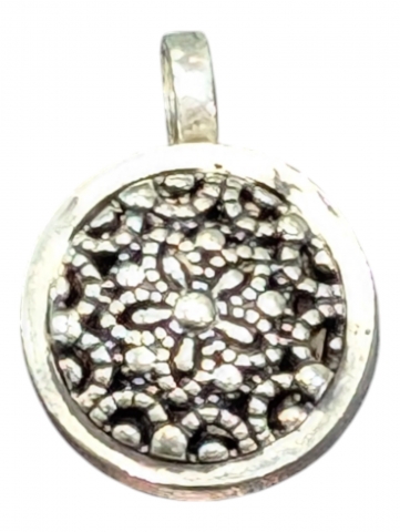Sterling silver ash holder pendant. The pendant clasp is screw-on. Circular model with flower.