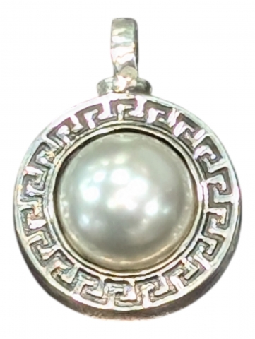 Sterling silver ash holder pendant. The pendant clasp is screw-on. Circular model with pearl.