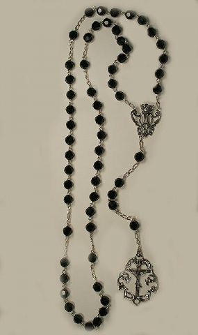 Rosario with glass of Swarovski has ball of 14 mm María and Cruz of law silver. Color Jet.