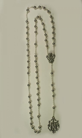 Rosario con cuentas bola lisa de plata de ley 6 mm. Cruz y María de Plata de Ley.