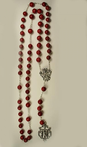 Rosario de Plata de Ley con Coral esponja de 10 mm.