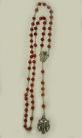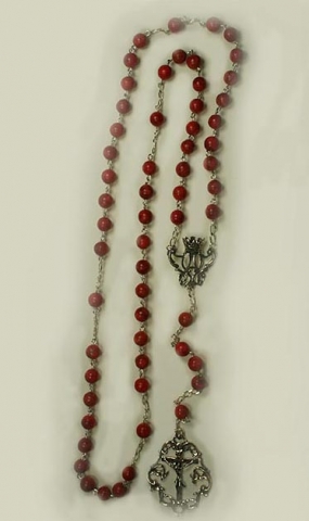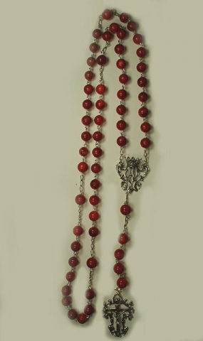 Rosario de Plata de Ley con Coral esponja de 8 mm.