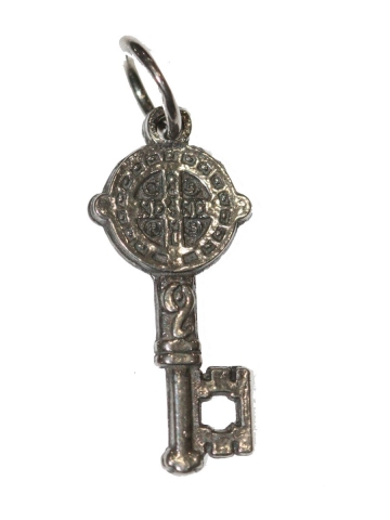 Llave con la medalla de San Benito en Plata de Ley. Medidas 2 x 1 cm. Peso 1.5 gr.