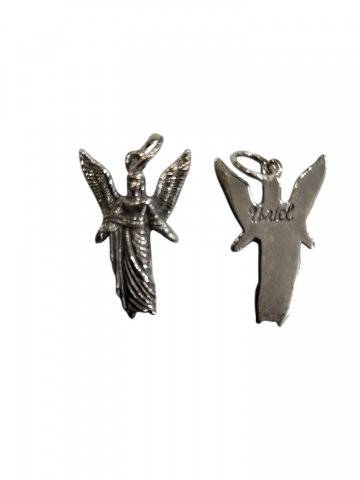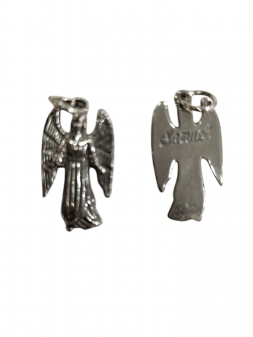 Medalla San Rafael en Plata de Ley. Peso 2.8 gr aprox. Medidas 2.5 x 1.5 cm.