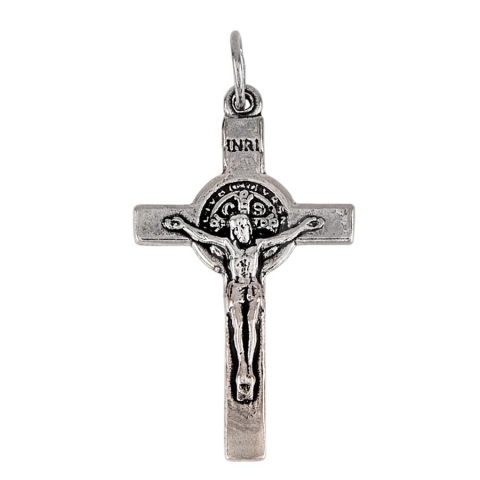 Cross of Saint Benedict in oxidized silver. Measurements: Length 35 x 19 mm Ø. Metal: Sterling silver of 925 thousandths.