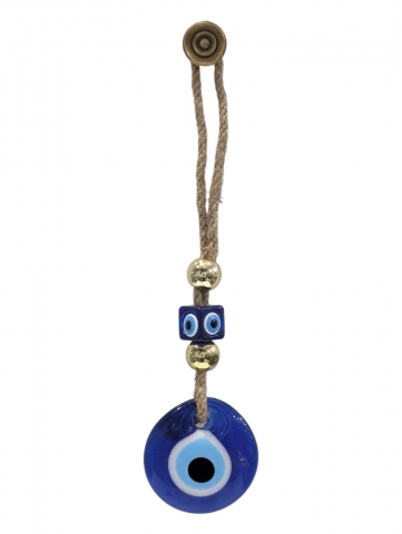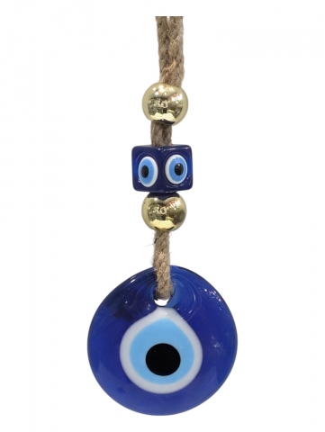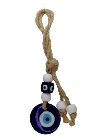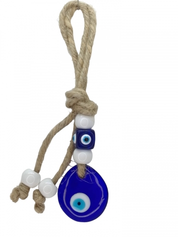 Amuleto ojo turco de cristal para colgar. Medidas: 22 cm largo, 8 cm Ø.