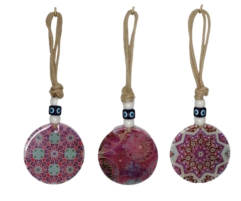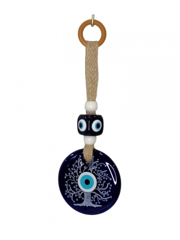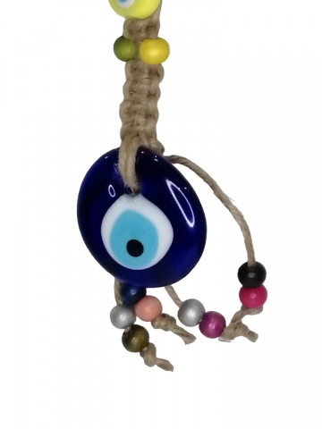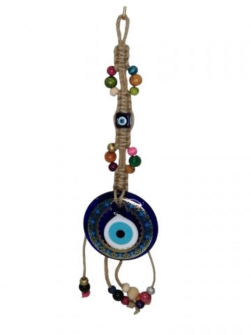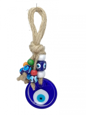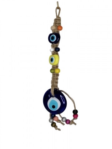 Amuleto ojo turco de cristal para colgar. Medidas: 20 cm largo, 10 cm Ø. Varios modelos.