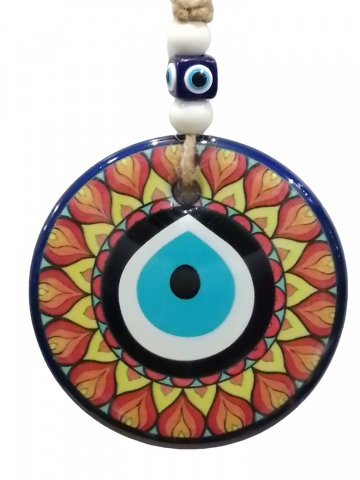 Amuleto ojo turco de cristal para colgar. Medidas 7.5-8 cm Ø.