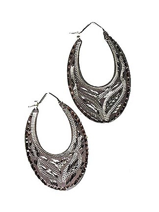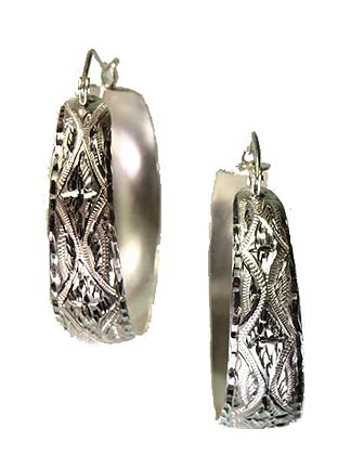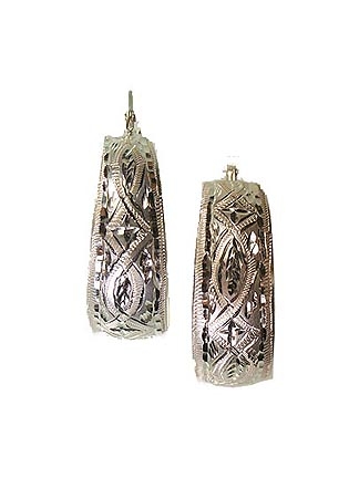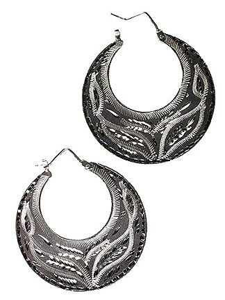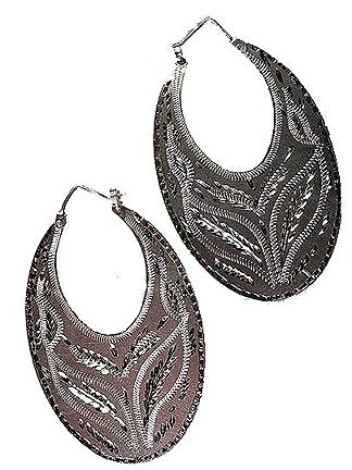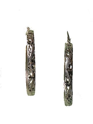 Earings in silver 60x40 mm. Weight: 14 gms. Due to the artisanal nature of the piece, the image is an example, the decoration may change.