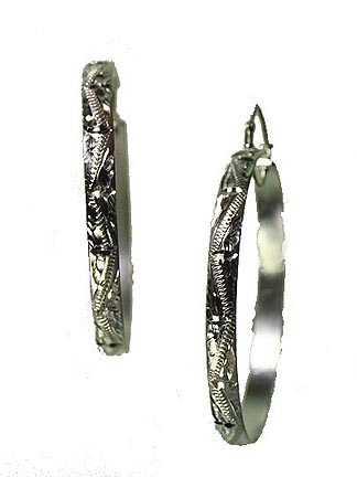 Pendiente oval plano 60x40 mm de diámetro en Plata de Ley repujada. Peso aproximado 14 gramos. Debido al carácter artesanal de la pieza la foto es orientativa pues los motivos pueden variar .