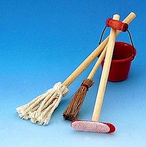Conjunto de limpieza : Fregona, escoba. mopa y cubo.