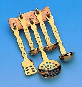 Recogedor y cepillo en metal con baño de cobre y pulido.