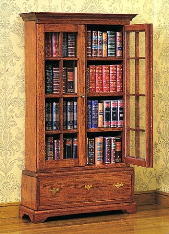 Librería Chippendale, con paneles de cristal real. (1740-1790)Medidas:17x10x3 cm. (Kit de montaje Mini Mundus).