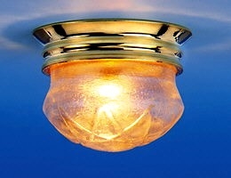Lampara " Brilliant " de techo con tulipa redonda de cristal y acabado en oro.