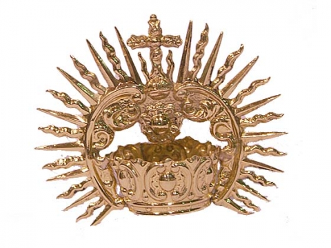 Corona en metal dorado. 8 x 9.50 cm.Diámetro 3.50 cms