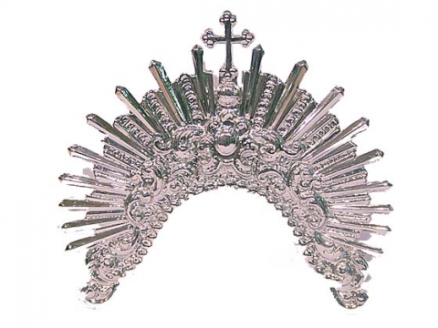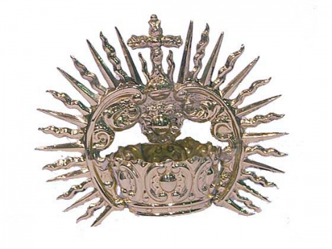 Corona en metal plateado. 9 X 8.50 cm.Diámetro 3.50 cm