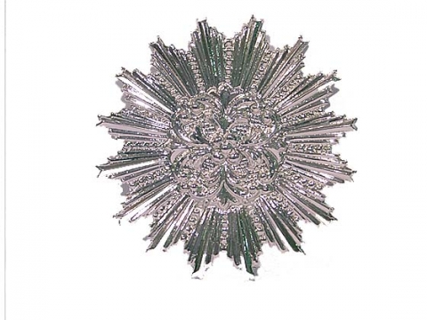 Corona en metal plateado. 8 x 9.50 cm. Diámetro 3.50 cms