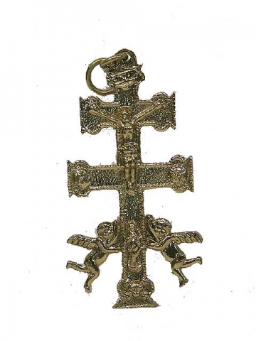 Caravaca Cross in golden metal .Dimensions: 11.50 cm.