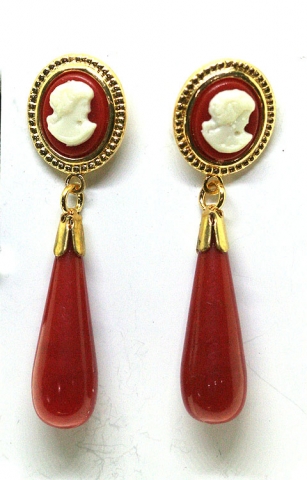 Pendientes de metal chapado con plástico imitación coral. Ideal para vestidos de flamenca. . Medidas (Ancho x Alto): 8x35 mm.