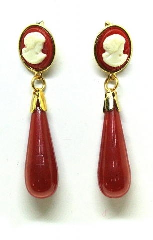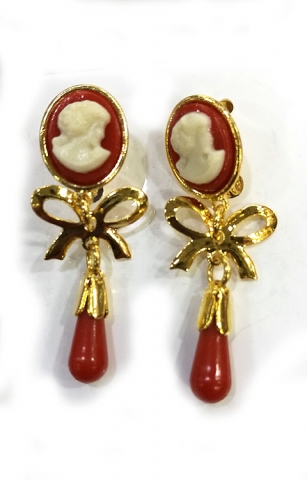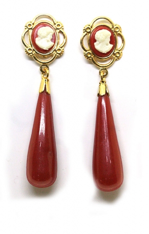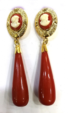 Pendientes de metal chapado con plástico imitación coral. Ideal para vestidos de flamenca. . Medidas (Ancho x Alto): 5x30 mm.