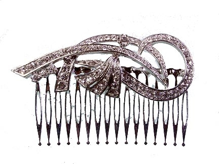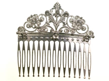 Comb with Austrian crystal and rhodium bath design antiallergic Maximo Parra. Measures 10 x 5 cm.