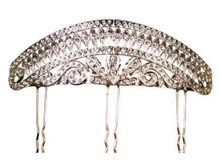 Comb with Austrian crystal and rhodium bath design antiallergic Maximo Parra. Measures 5 X 7 CM.
