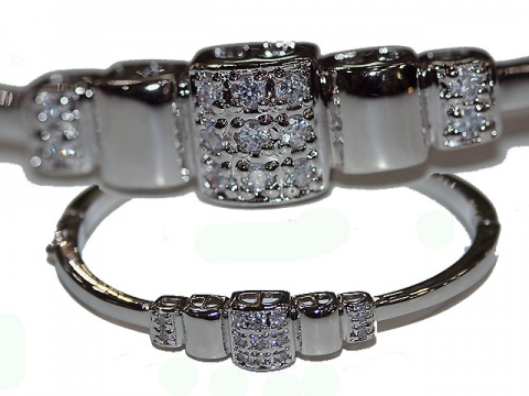 Pulsera de metal y cristales de Strass con baño de rodio anti-alérgico. Modelo de Maximo Parra. No se oxidan ni es necesario limpiarlos. Medidas (Ancho x Alto): 6 X 5.8 cm. MODELO : P/641/12