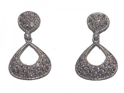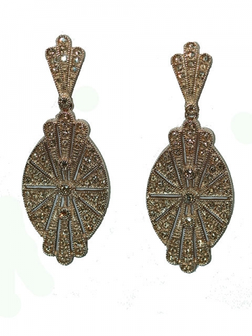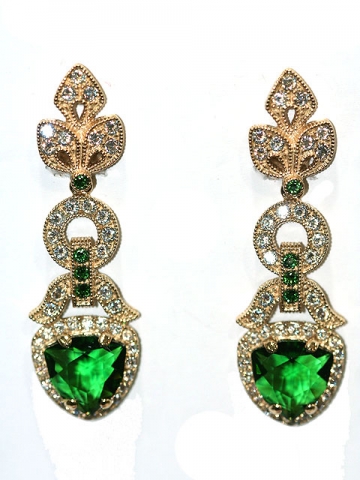 Pendientes en plata de ley con cristales de Swarovski y acabado en oro rosa. Diseño de Máximo Betro. Cierre Omega. Medidas largo x ancho : 5.5 x 1.8 cm - Color Verde