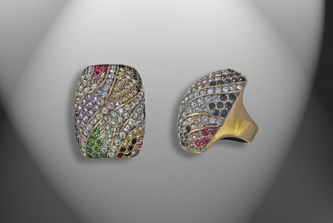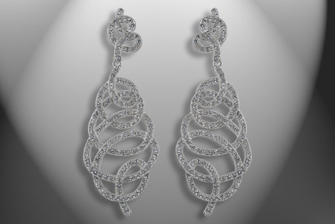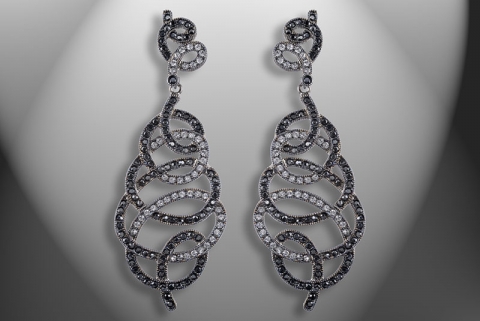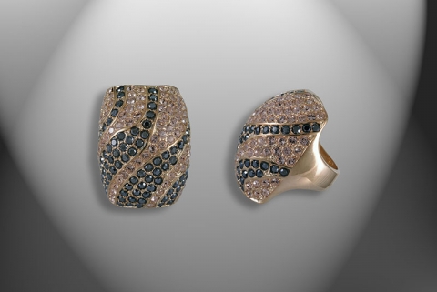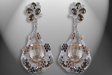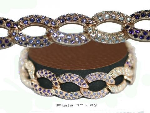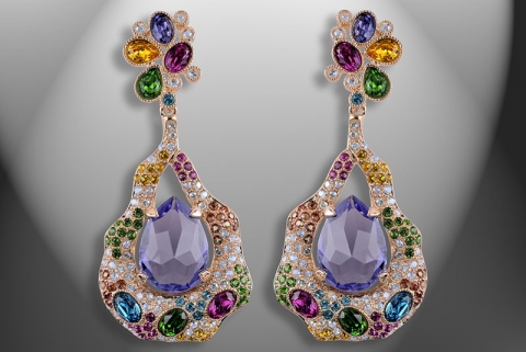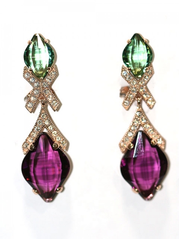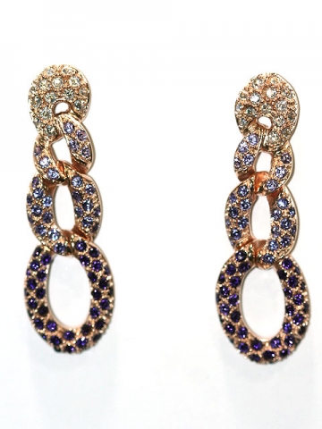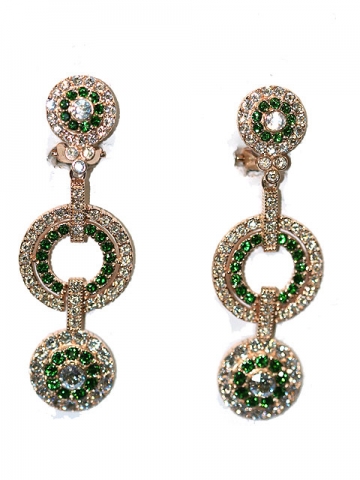 Sterling silver earrings with Swarovski and rose gold finish. Design of Máximo Betro. Close Omega. Length x width Measures: 5.2 x 1.8 cm. Grren colors,